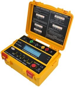 ● Microprocessor-controlled. ● Earth resistivity (ρ) test. ● Earth testing at 20Ω, 200Ω, 2kΩ. ● Earth voltage measuring : 0-300V AC. ● Automatic C spike check. ● Automatic P spike check. ● 2-Wire test, 3-Wire test, 4-Wire test. ● LCM display. ● Auto ranging. ● Auto power OFF. ● Data hold. ● 200 measurement results can be saved in the memory and recalled on the display. ● Interval between auxiliary earth spikes is 1.0~50.0m. ● Optical USB to RS-232 data transmission. ● The stored data can be transferred to a PC. ● 2 optical LEDs are built-in for data transfer.